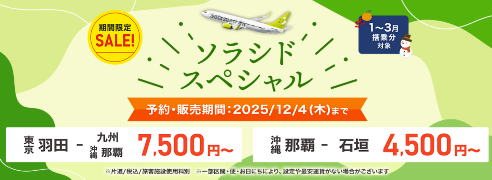 ソラシドスペシャル!羽田-那覇が9,240円からの大セール!