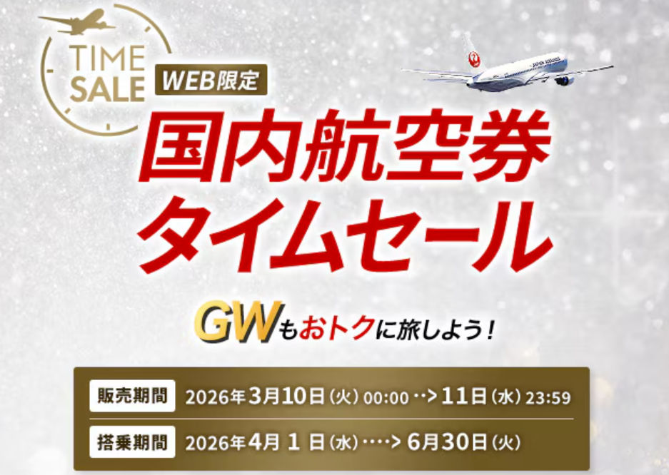 JAL国内航空券タイムセール開催!