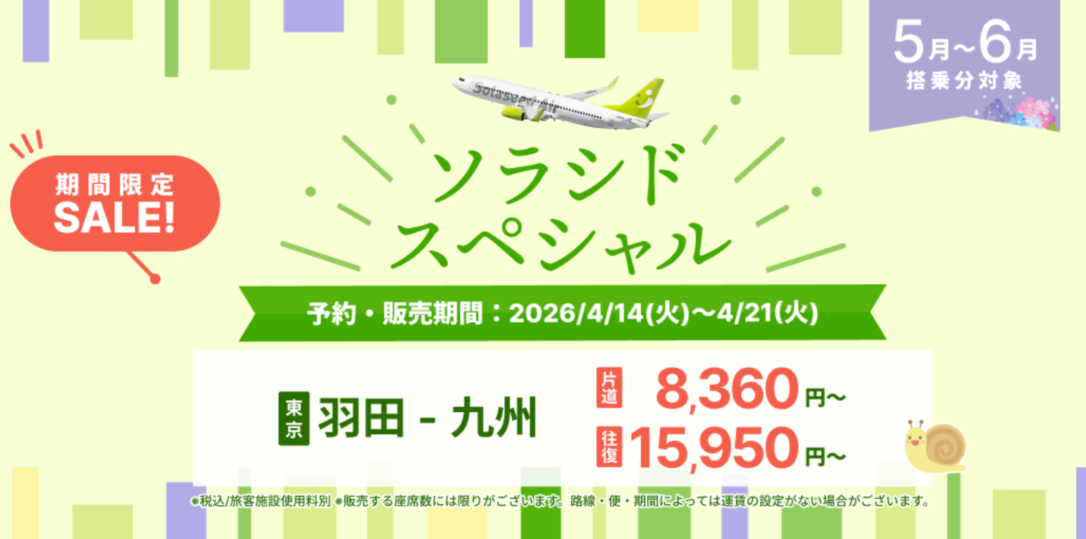 ソラシドスペシャル!羽田-九州が8,360円からの大セール!