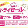 ※前回2025年12月26日(金)~2026年1月6日(火)搭乗分の設定はありませんでしたが、今回は記載がありません。対象かも?