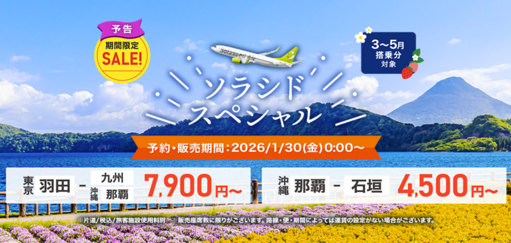 1月30日(金)0:00よりソラシドエアが期間限定SALE開催です!