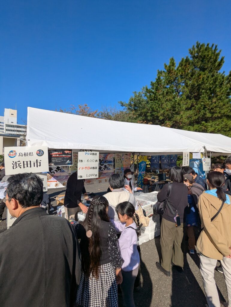 東京海洋大学の学祭ですが、毎年、島根県浜田市のお魚PRで出店しています。
