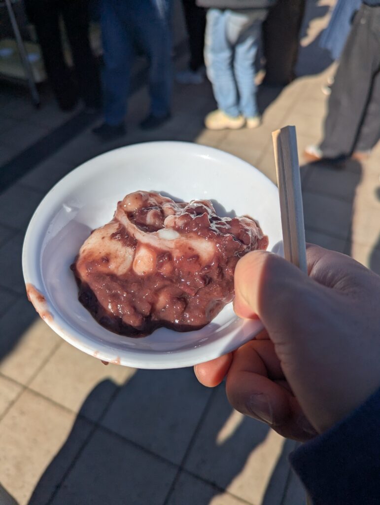 たまたま餅つきイベントをやっていたこともあって、餡子と大根おろしのお餅をいただくことに。