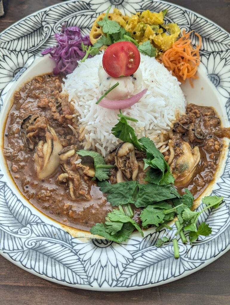 限定の牡蠣とパクチーのカレーに、イカ墨ブラックカレー。