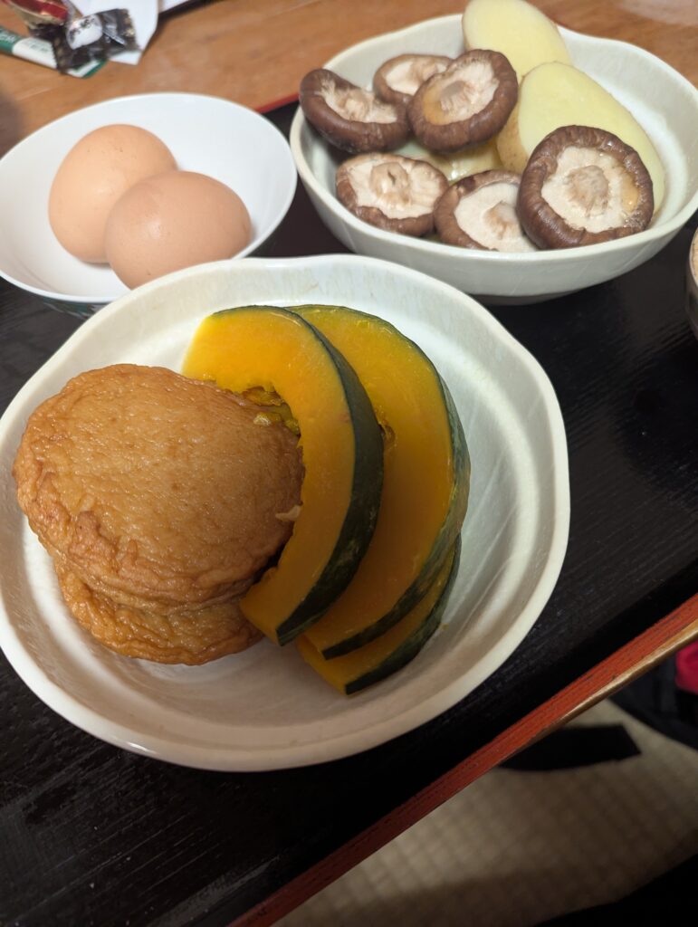 卵もカボチャもジャガイモも椎茸も蒸しあがり、味付けが塩かポン酢ぐらいしかなかったけど、とりあえず朝食を摂取。