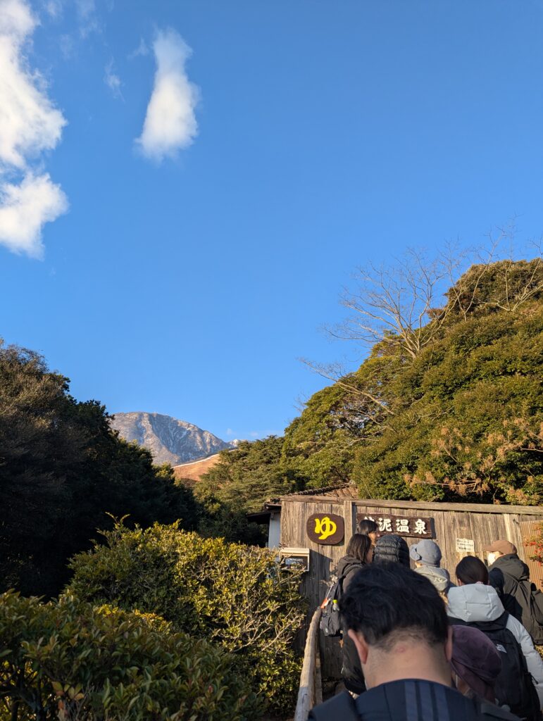 8時前には鉱泥温泉に到着したものの、それなりに行列。