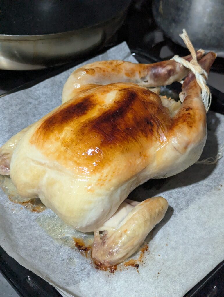 早朝からローストチキンを焼成。
