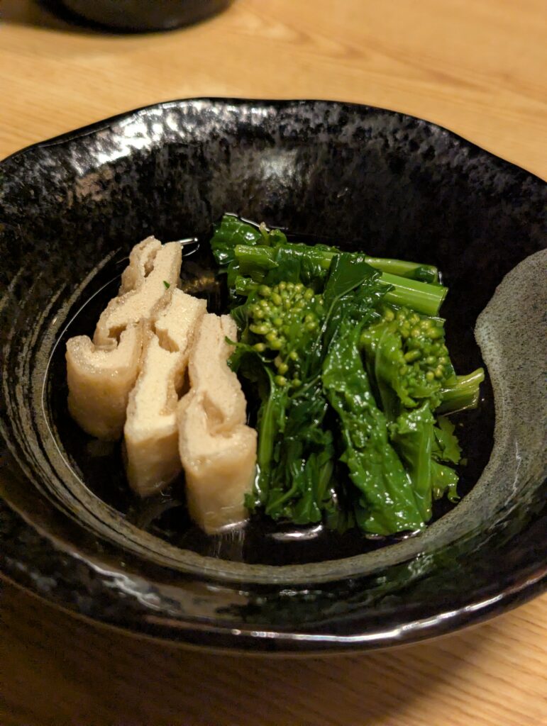 出汁の効いた菜の花と揚げは、非常に美味しく、ステーキももちろん素晴らしく。