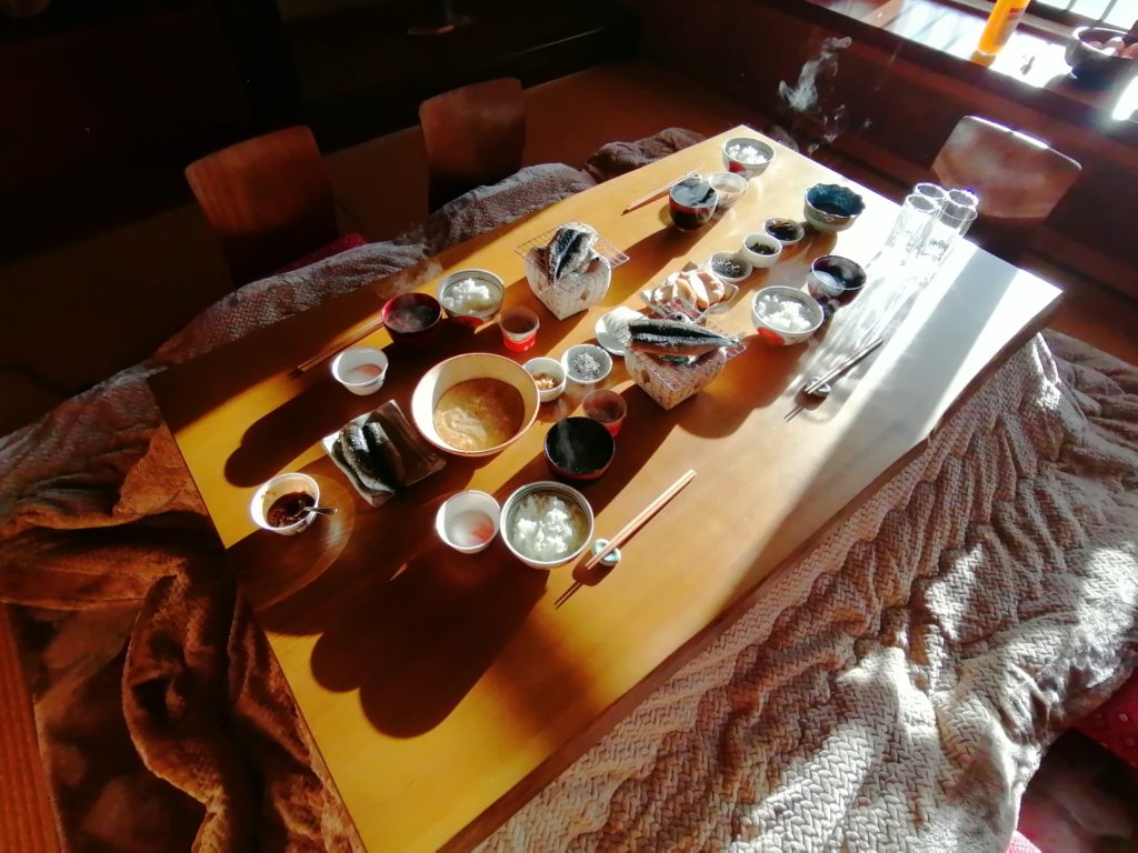 聞いてた以上に大きくて笑ってしまいましたが、到着してすぐお風呂、30日の晩(焼肉 これは自ら焼かせていただきました。)、31日の朝(自然薯とか紐干物とか)、昼(蕎麦)、夜(火鍋)、1日の朝(雑煮)、昼(うどん)とほぼお世話になりっぱなし!