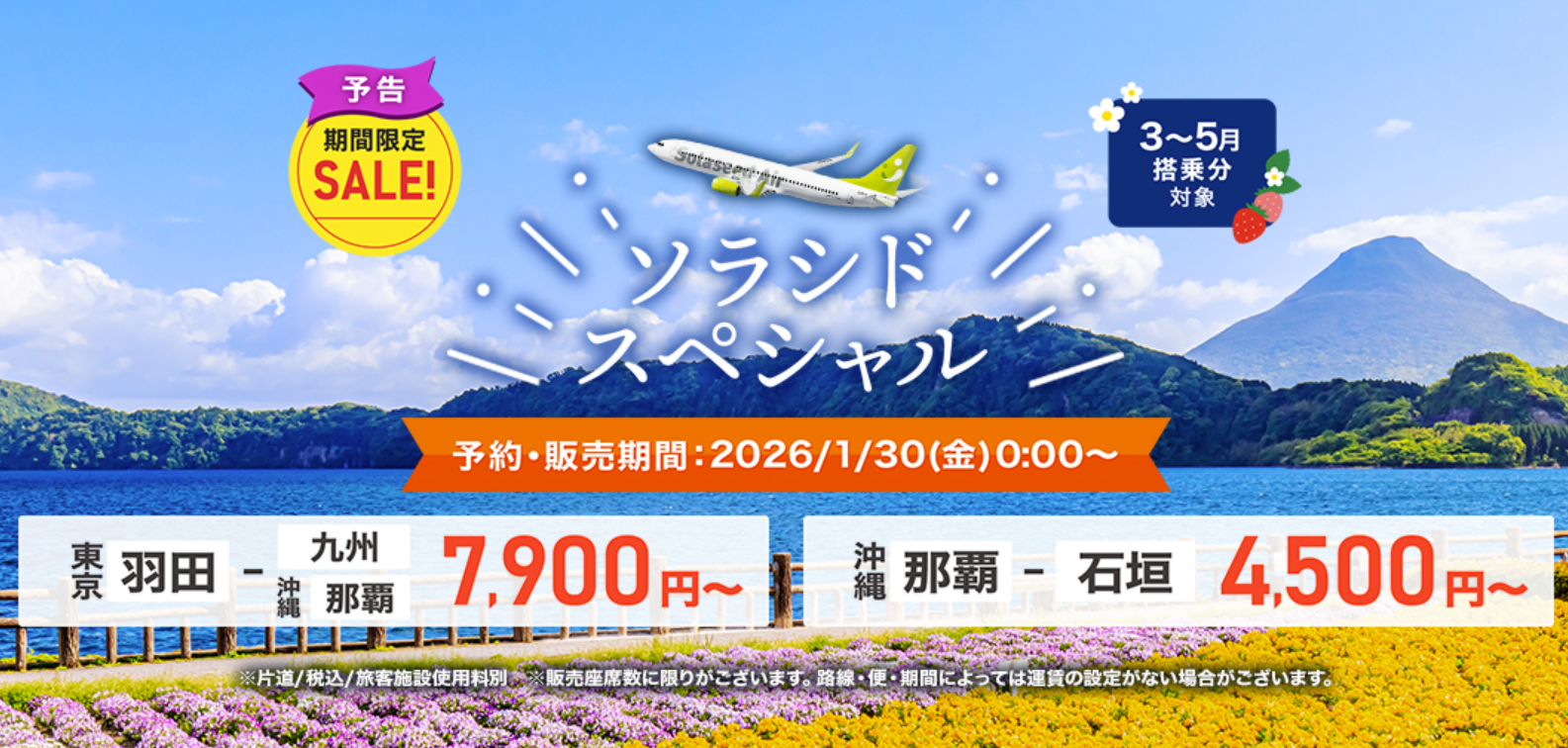 ソラシドスペシャル!羽田-那覇が8,100円からの大セ...
